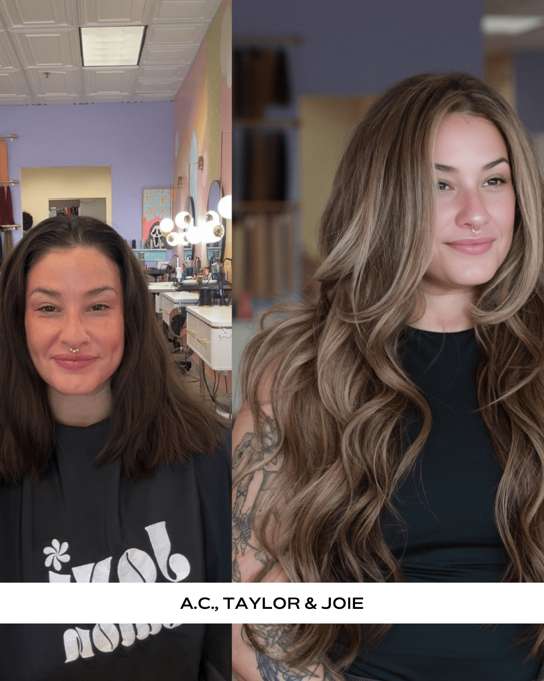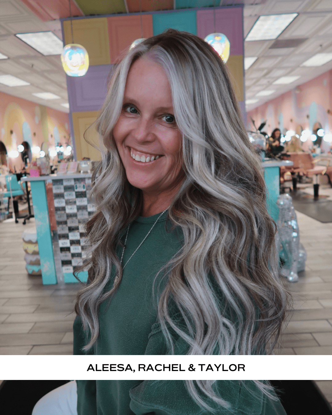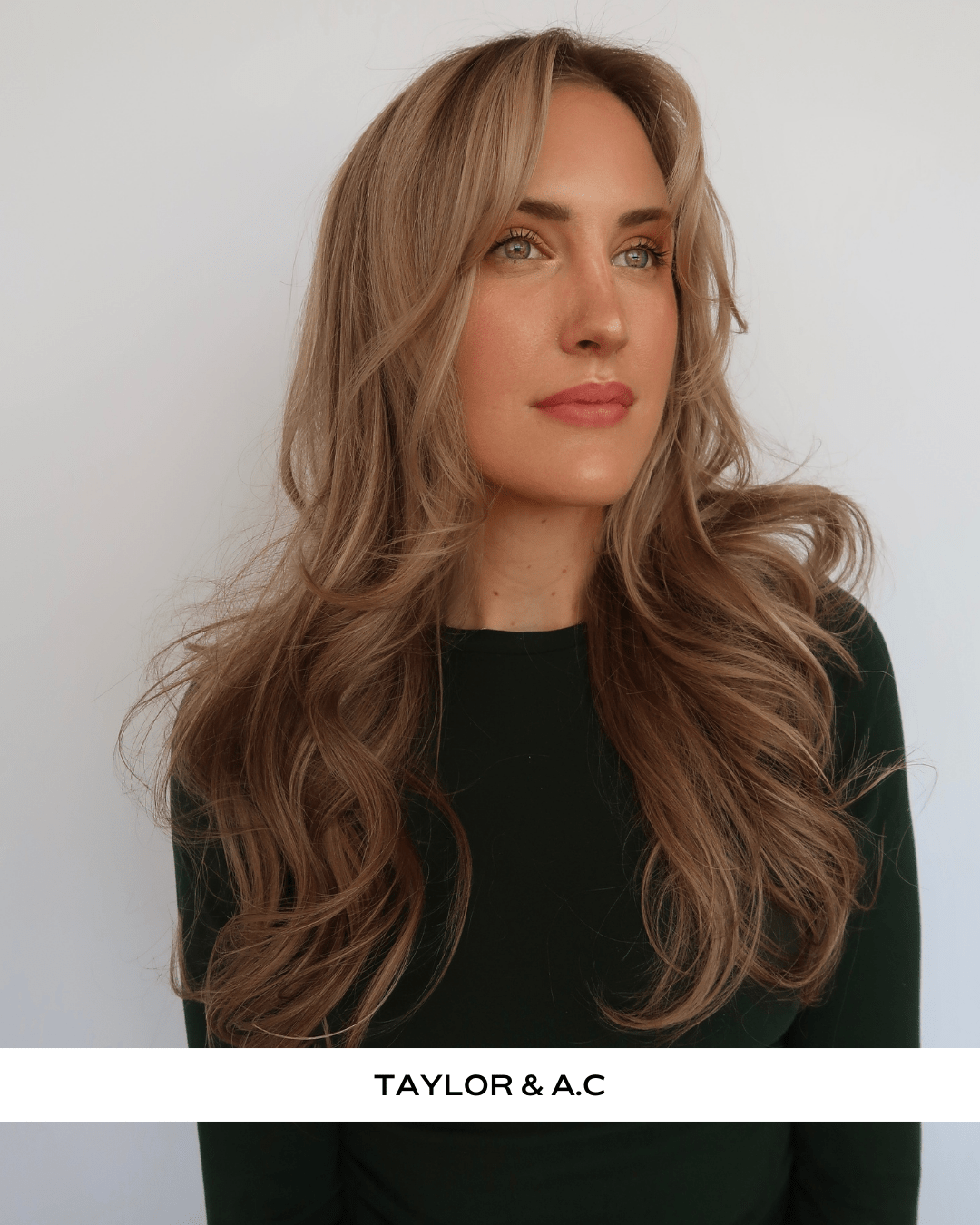 Riding shotgun with her hair undone, Taylor is our most popular blending shade for natural blondes. Almost an exact match for Taylor Swift's "old money" blonde, it is perfect as a highlight shade in brunettes, or a low light shade to help blend partial foil clients that also get extensions.