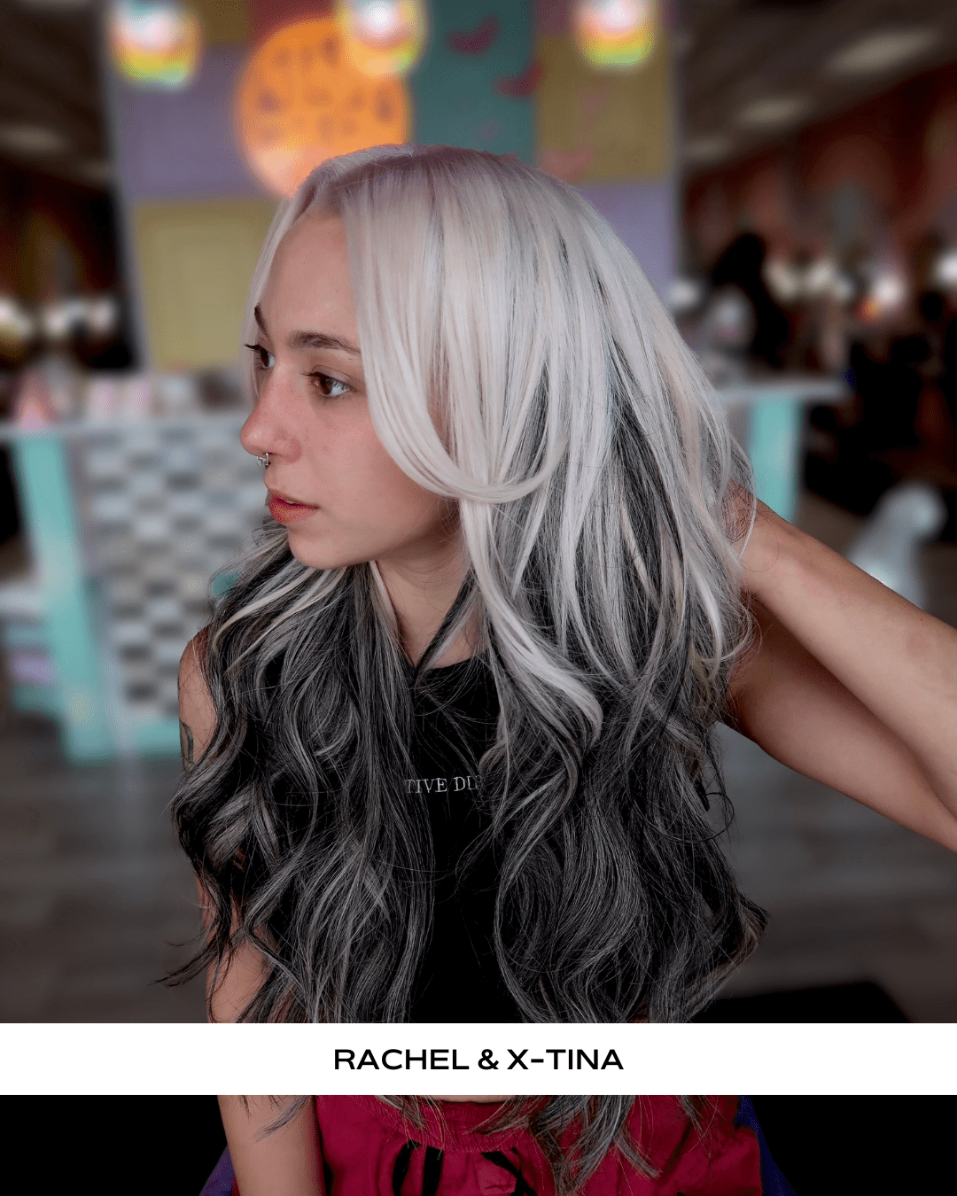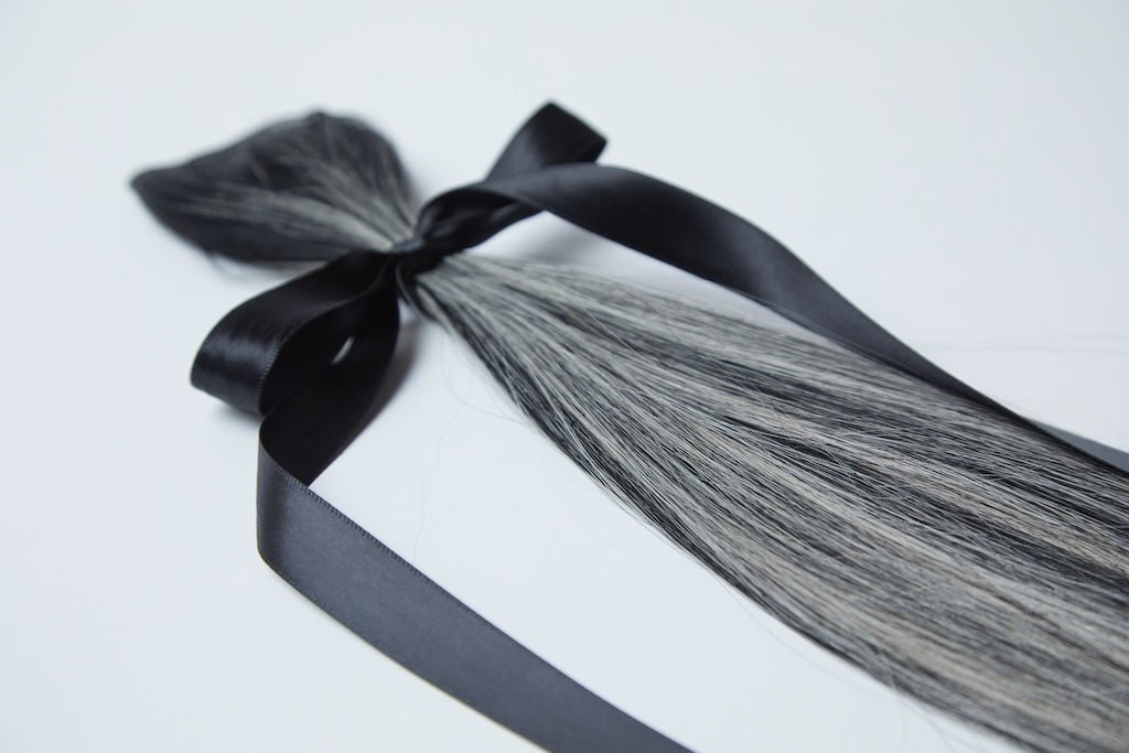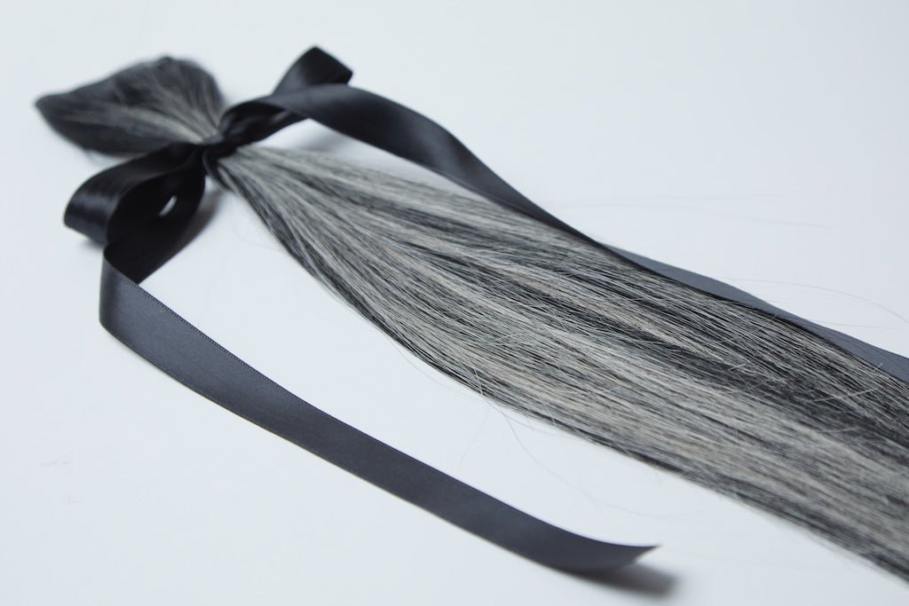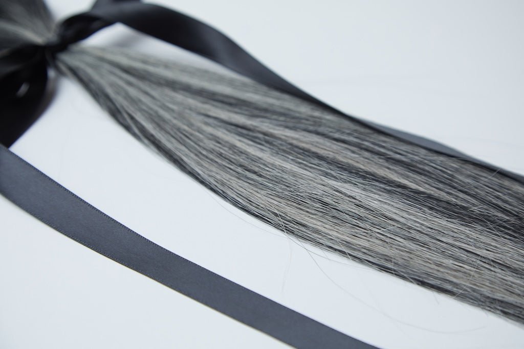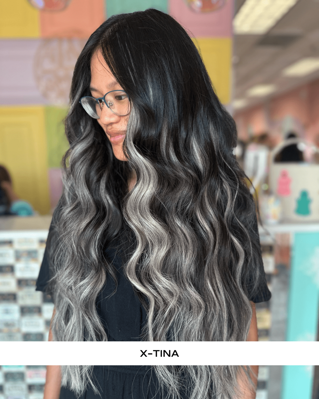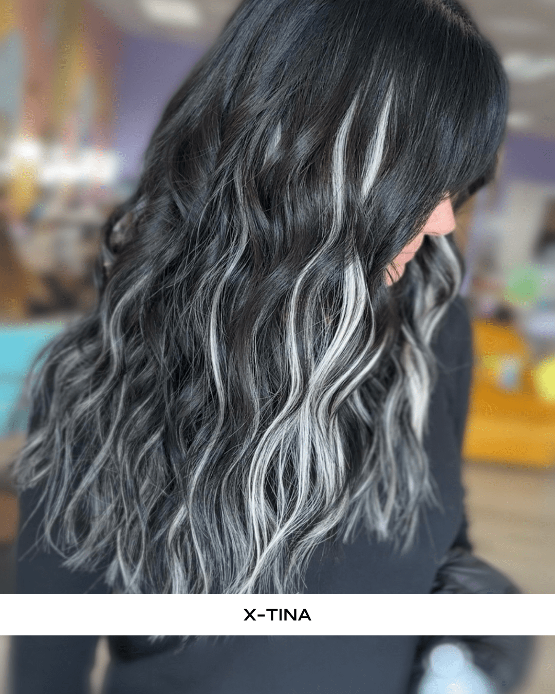 Our signature Balayage, X-Tina has ribbons of almost black and silver/white.