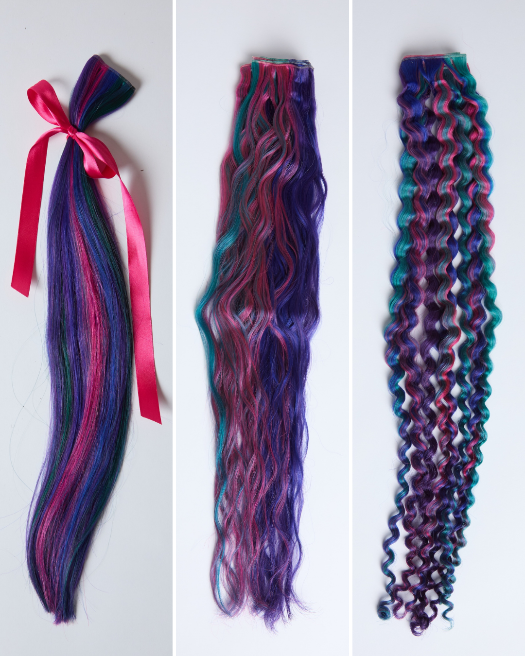 FOR PASTEL EXTENSIONS: use tinted conditioners after every wash to keep color fresh. Pastels naturally fade faster than dark tones, but Cutie Heads extensions are dyed with textile-grade fabric dyes, allowing them to hold color longer than natural hair.